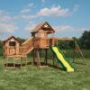 Explore a world of enchantment with the Mystic Tower Swing Set by Backyard Discovery. The centerpiece of this magical play space is the secret door and crawling tunnel that leads to a hidden climbing tower, perfect for imaginative exploration. The fun continues with the large, elevated clubhouse, complete with a covered crow’s nest where young adventurers can keep watch and plan their next quest. Kids can choose their own adventure to the clubhouse by either conquering the rock wall, climbing the rope ladder, or taking the flat step ladder before zooming down the exciting 8-foot speedy wave slide. They’ll love soaring through the air on two classic belt swings or enjoy the fun web disc for a playful swinging experience. The lower play area becomes even more magical with a toy grill and food set for creative cooking fun. Crafted from naturally durable cedar wood, this wooden swing set brings backyard adventures to life while standing up to active play through every season. With a ready-to-assemble design and guided instructions through the interactive BILT® app, this swing set kit offers a hassle-free setup. Transform your backyard into a charming playground where imagination and play come together in the Mystic Tower.